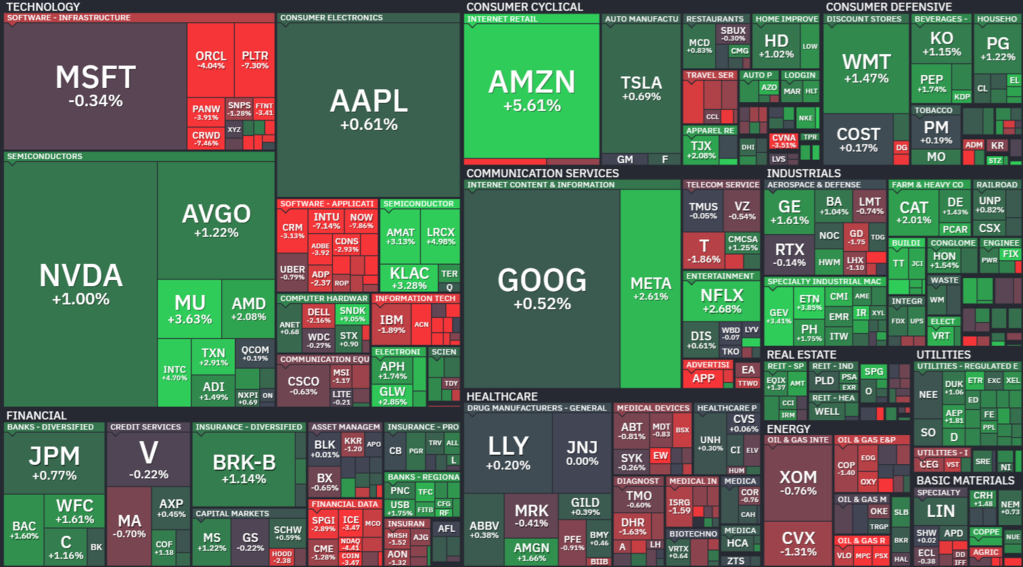 반면 마이크로소프트(MS)는 0.32% 내렸고 이란 휴전 지속 기대감 속에 타격이 예상되는 팔란티어는 7.26% 급락했습니다.