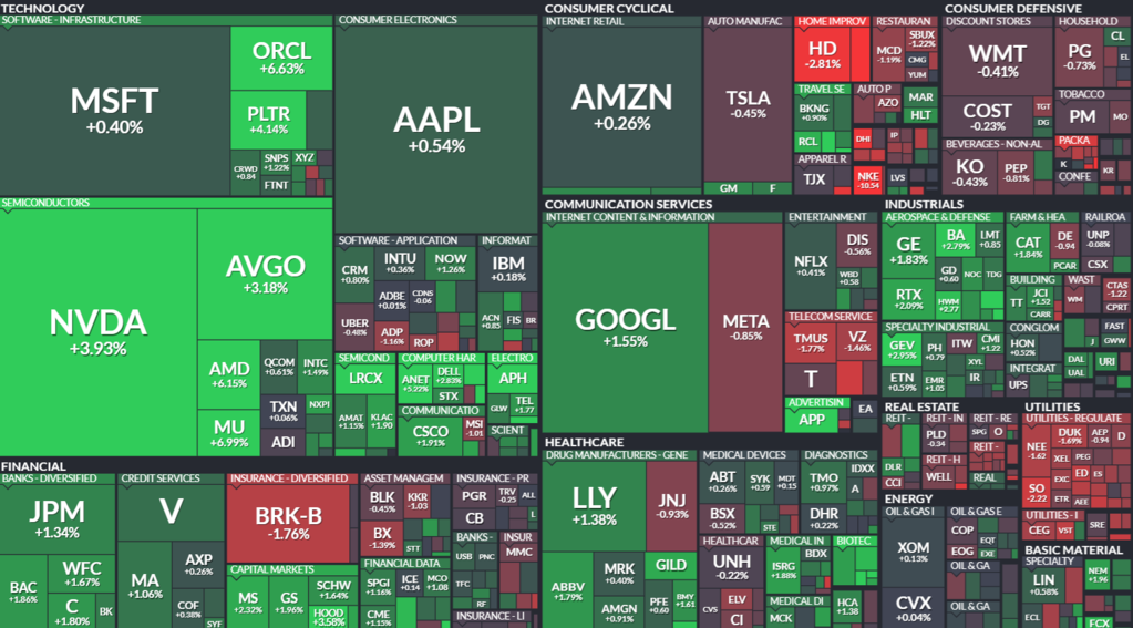 마이크론테크놀로지의 실적 호조가 발표된 이후 인공지능(AI) 업종에 대한 기대감이 살아났습니다. 마이크론의 주가가 6.99% 상승한 가운데 엔비디아와 팔란티어가 각각 3^와 4% 올랐고, AMD는 6% 급등했습니다.