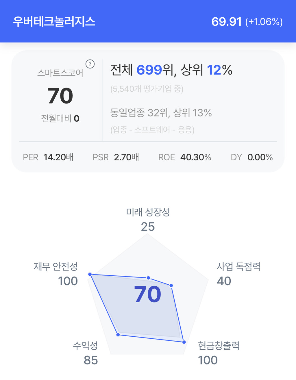 우버 주가는 69.91달러로 1.06달러를 기록했다.