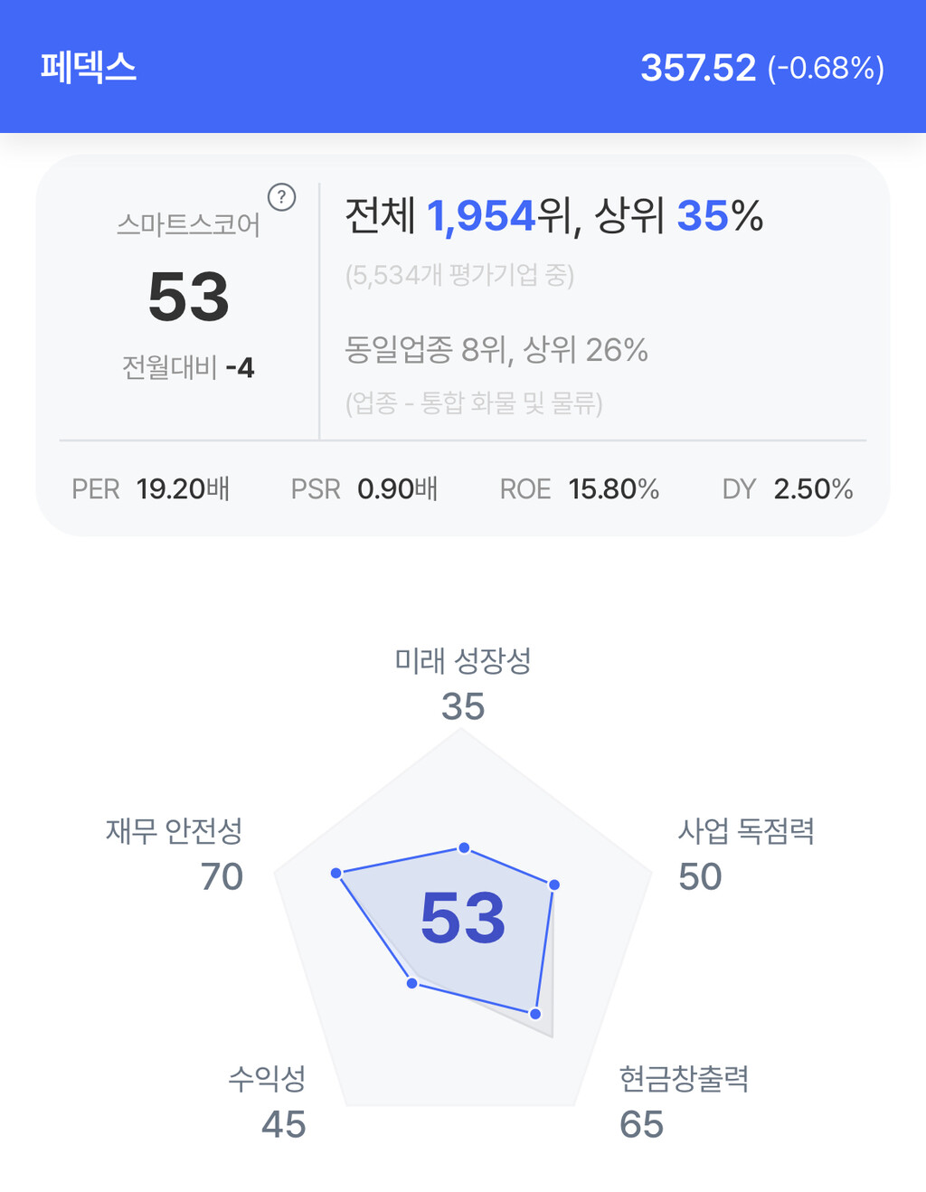 페덱스 주가는 0.68% 하락한 357.52달러를 기록했다.