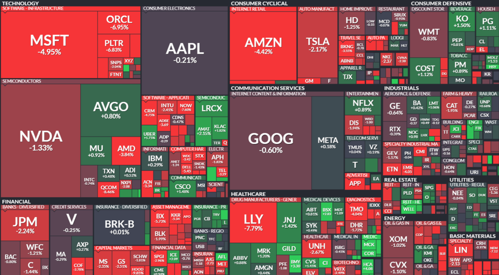 소프트웨어와 일부 반도체주는 추가 압박을 받았습니다. 퀄컴은 글로벌 메모리 공급 부족 여파로 실적 전망이 기대에 못 미치면서 주가가 8.4% 급락했습니다.