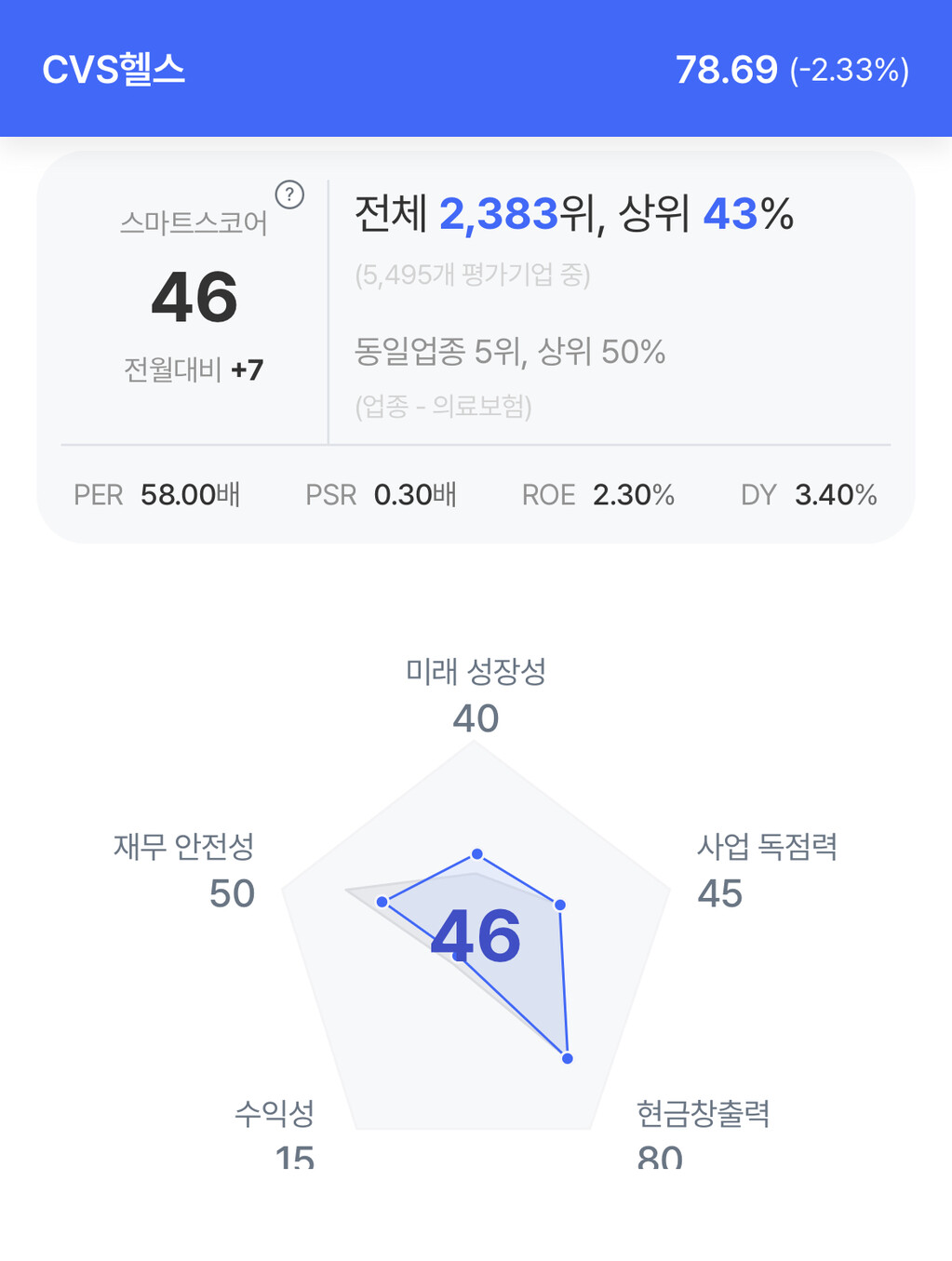 | CVS 헬스 주가 분석. (자료=초이스스탁) |