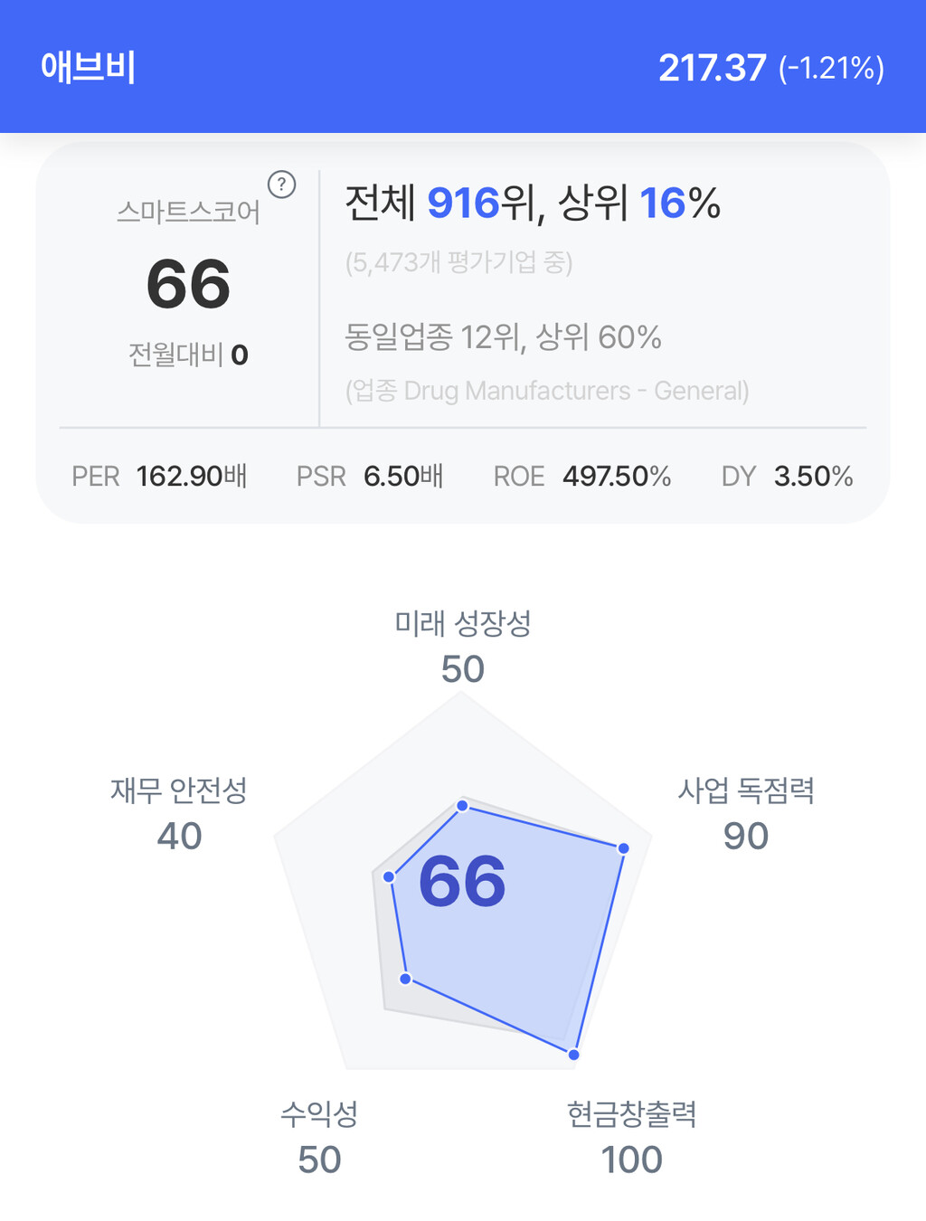 애브비 주가 분석. (자료=초이스스탁)