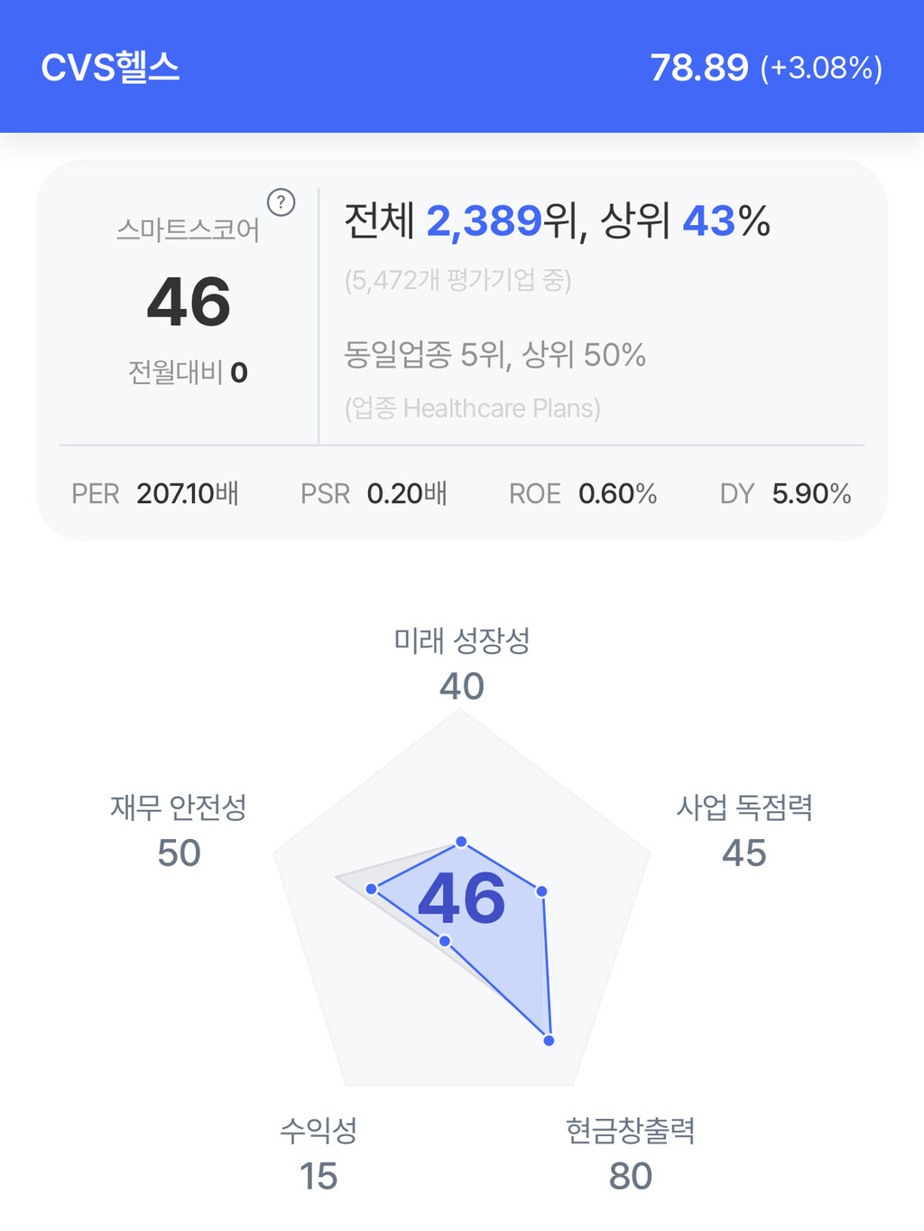 | CVS헬스 주가 분석. (자료=초이스스탁) |