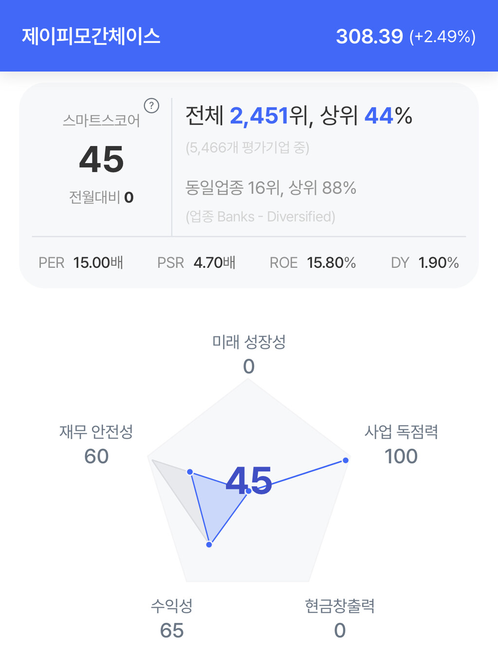 주가는 308.39달러로 2.49% 상승 후 마감했다.