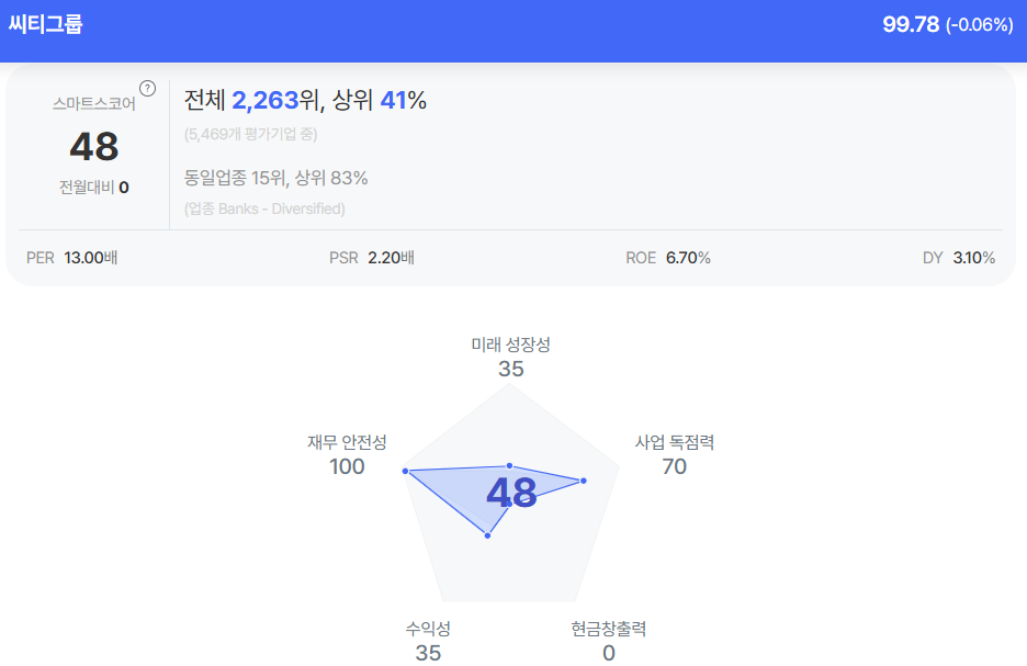 씨티그룹 종목진단 (출처=초이스스탁)