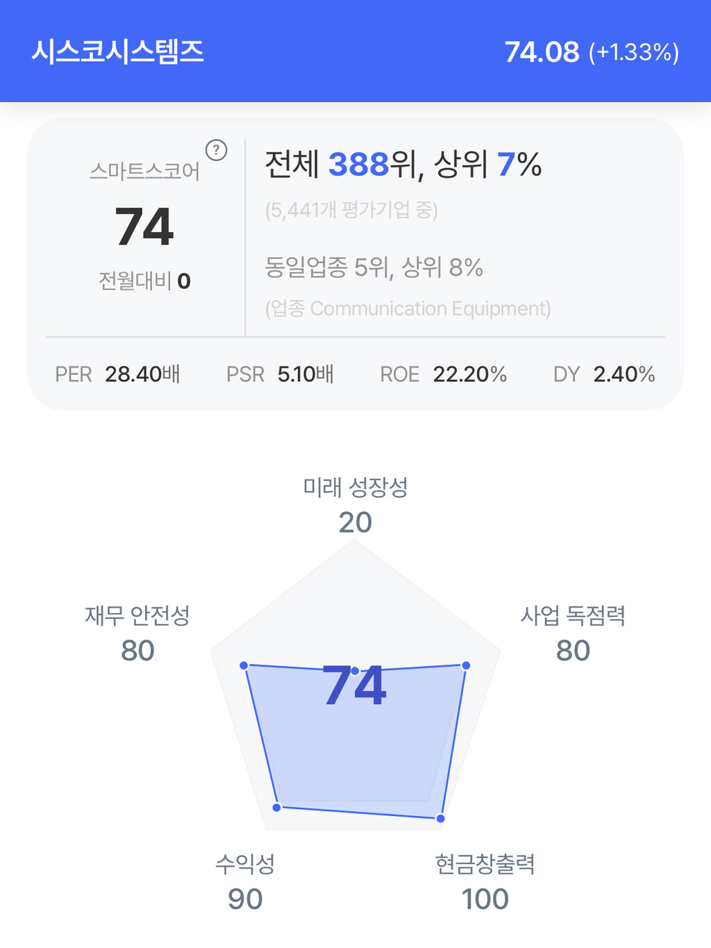 주가는 74.08달러로 1.33% 상승 마감했다.
