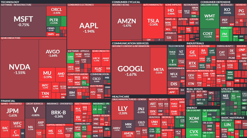 기술주와 반도체주도 고전했습니다. 엔비디아와 애플, 알파벳, 메타 등이 1% 넘게 떨어졌고 TSMC와 브로드컴은 각각 4% 와 1.6% 하락했습니다.