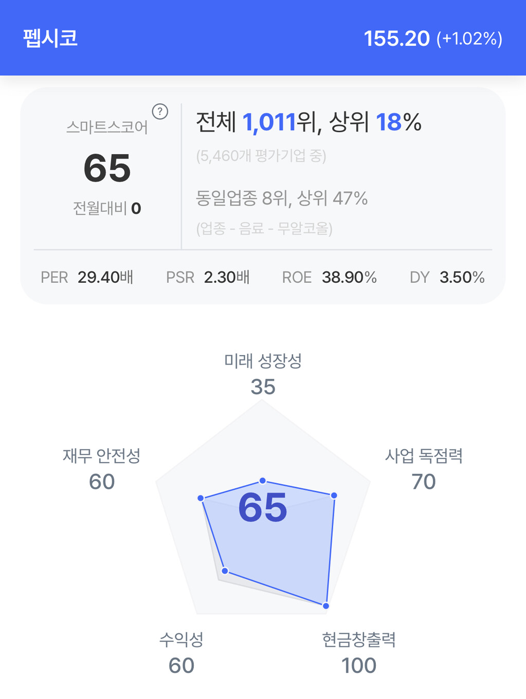 | 펩시코 주가 분석. (자료=초이스스탁) |