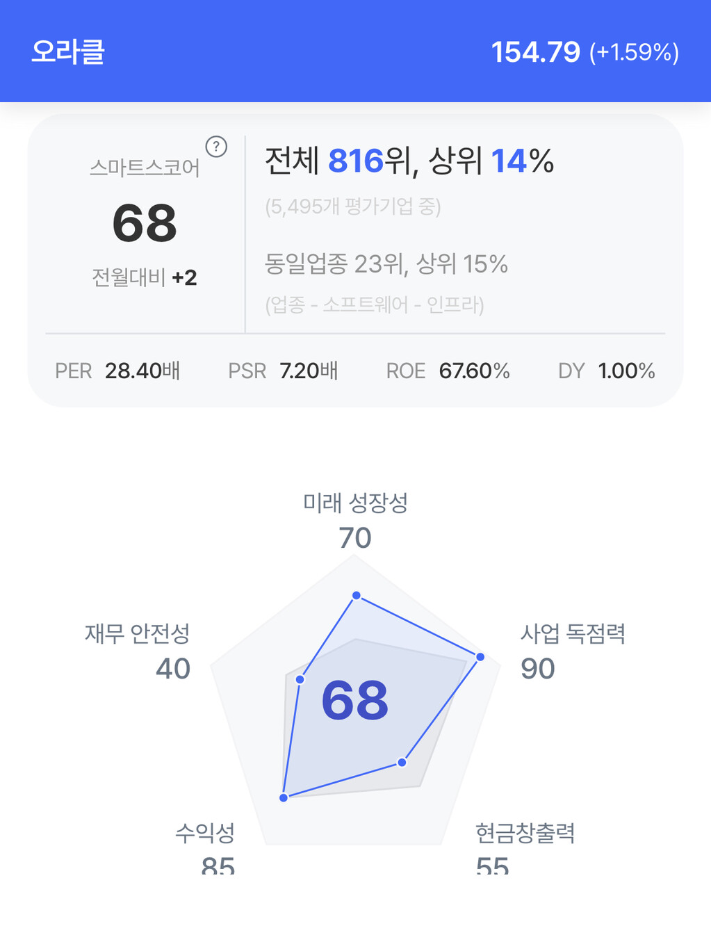 | 오라클 주가 분석. (자료=초이스스탁) |