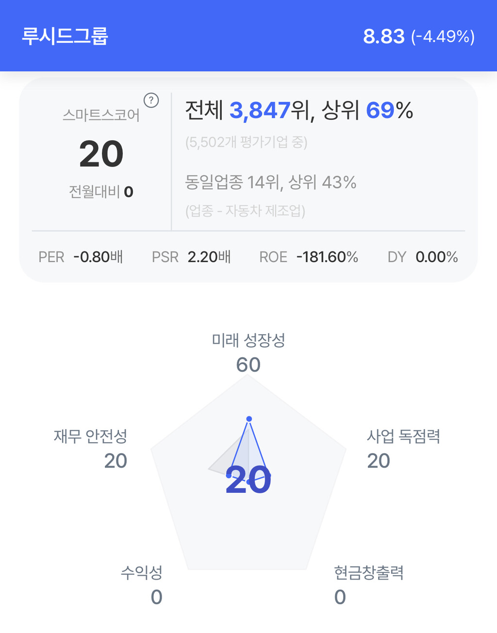 | 루시드 그룹 주가 분석. (자료=초이스스탁) |