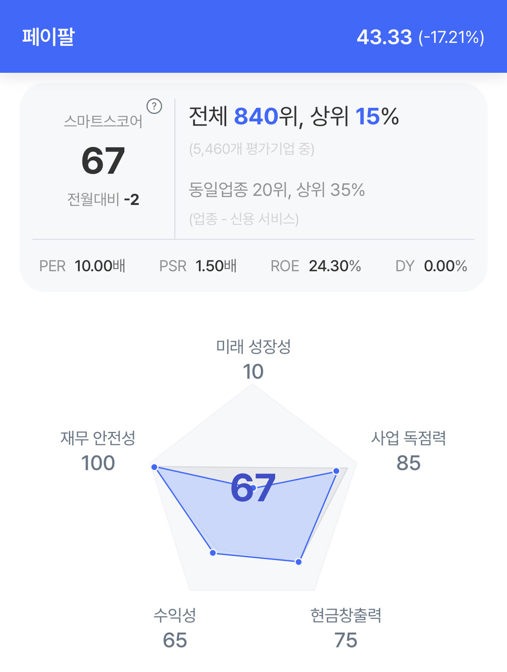 | 페이팔 주가 분석. (자료=초이스스탁) |
