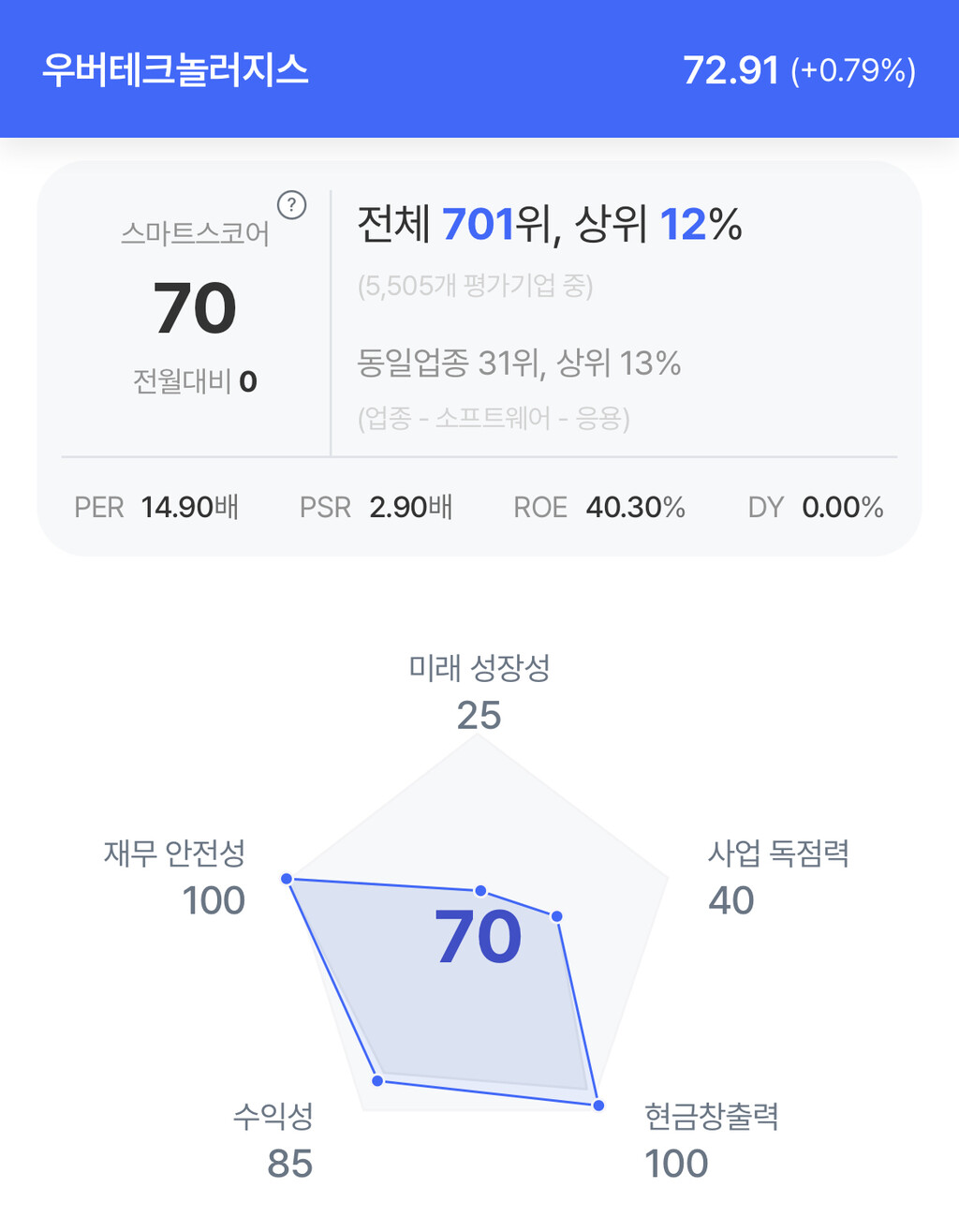 | 우버 테크놀로지스 주가 분석. (자료=초이스스탁) |