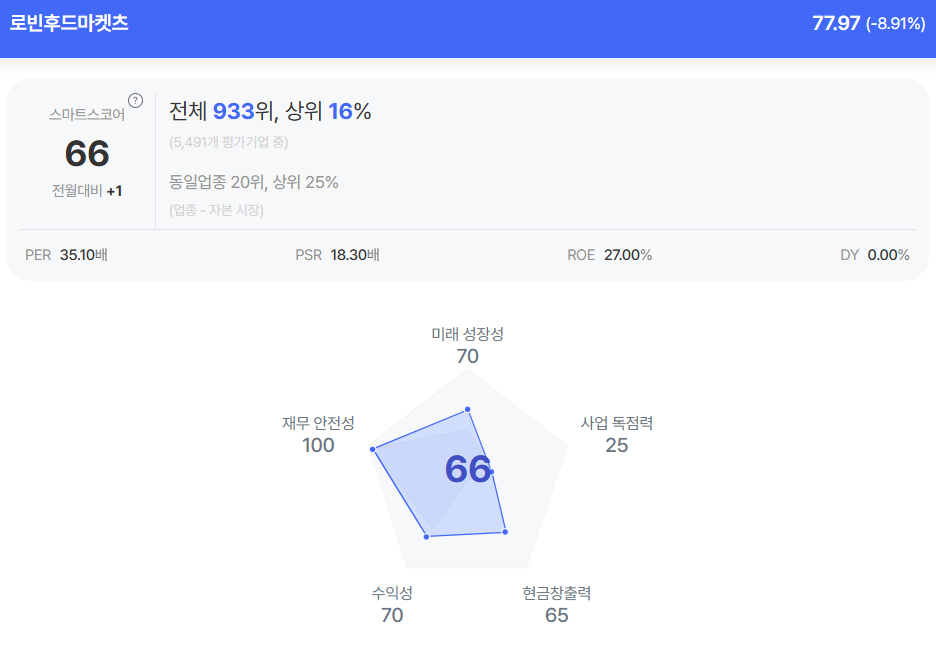 | 로빈후드마켓츠 종목진단 (출처=초이스스탁) |