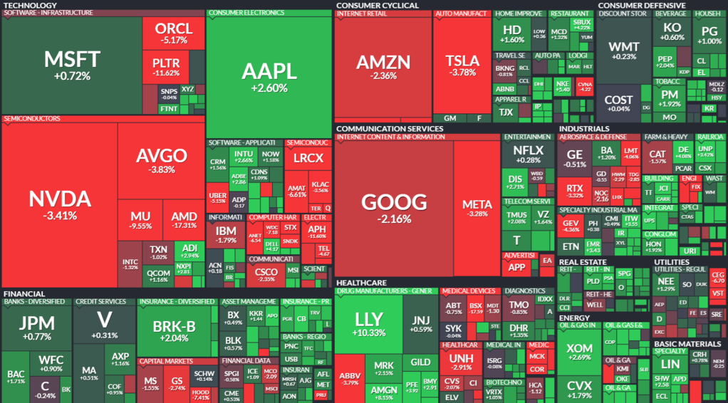 기술주가 밸류에이션이 지나치게 높아졌다는 점과, 월가의 AI 랠리가 정점에 도달했는지를 우려하면서 기술주를 중심으로 매도 압력이 높았습니다.