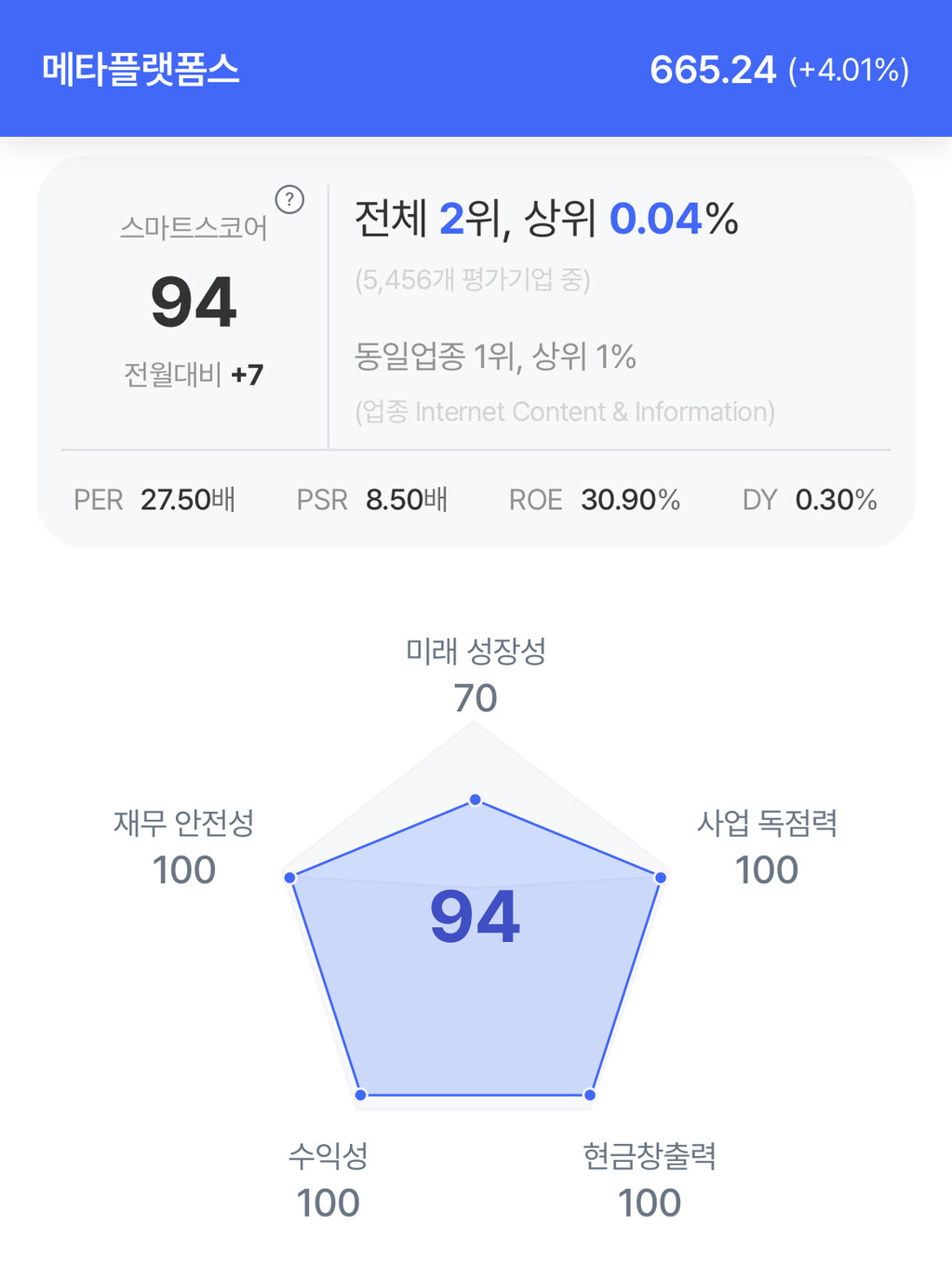 주가는 665.24달러로 4.01% 상승 마감했다.