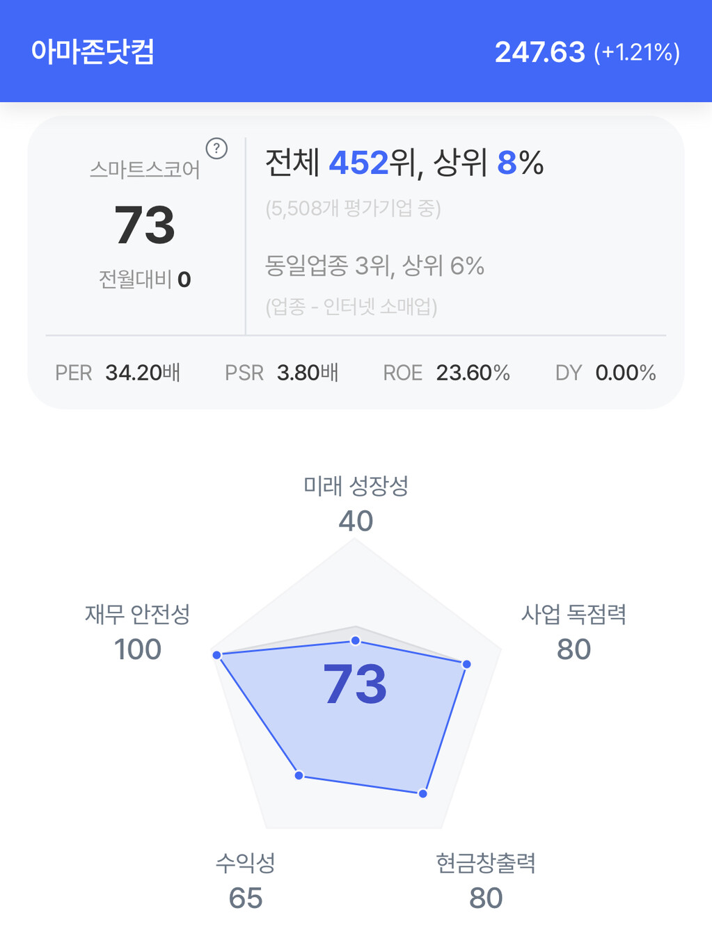 주가는 247.63달러로 1.21% 상승 마감했다.