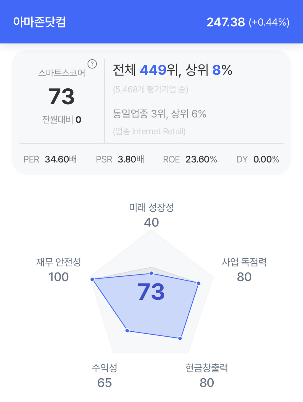 주가는 0.44% 상승한 247.38달러로 마감했다.