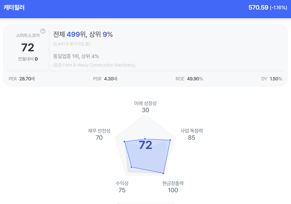 | 캐터필러 종목진단 (출처=초이스스탁) |