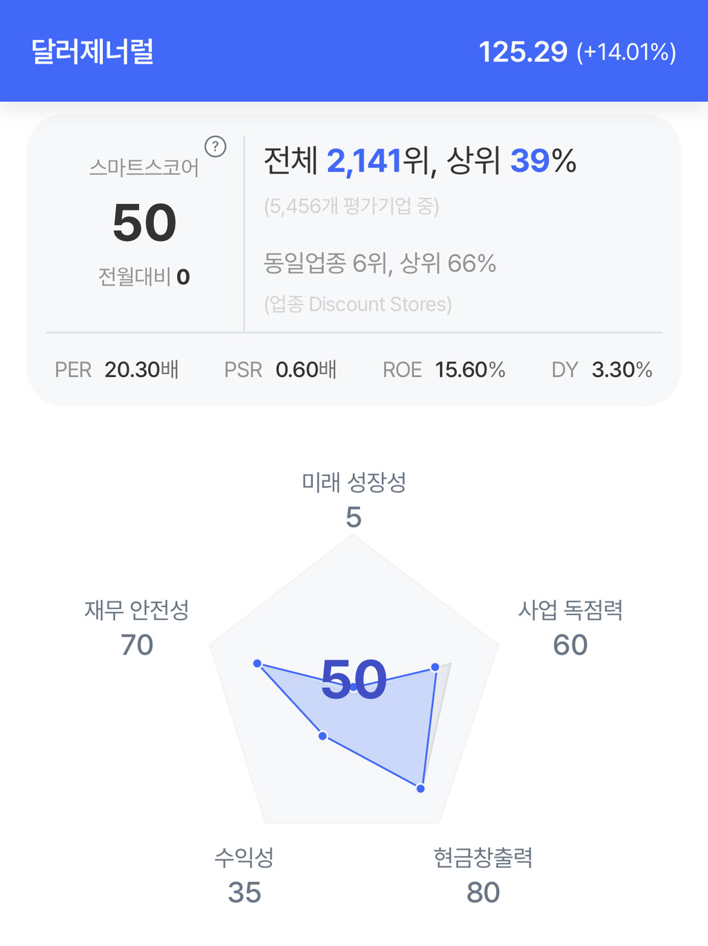 달러 제너럴 주가 분석. (자료=초이스스탁)