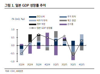 KB증권에 따르면, 일본 4분기 성장률은 속보치 전기비 0.1%에서 0.3%로 상향 조정되었으며, 특히 민간기업 설비투자 증가율이 전분기대비 1.3% 증가해 속보치 0.2%에서 큰 폭으로 상향 조정된 영향이 컸다.