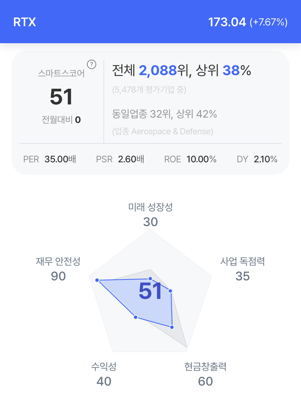 방산 부문인 레이시온은 패트리어트 미사일 등 방공체계 판매 증가로 매출이 10% 늘었으며, 상업용 항공기 부족으로 정비 수요가 늘면서 항공 서비스 부문 실적도 개선됐다.
