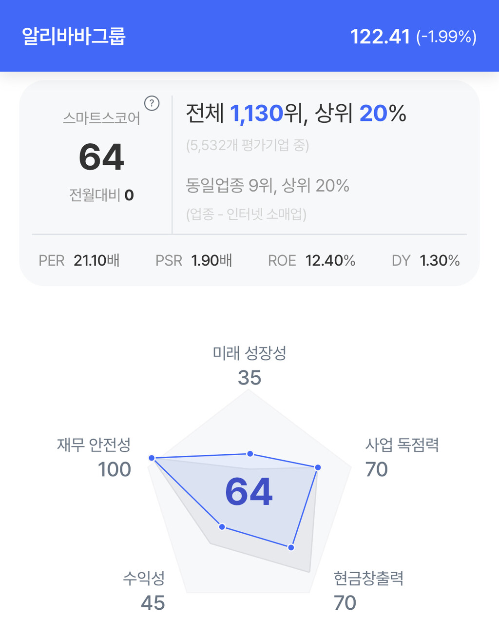 | 알리바바 그룹 주가 분석. (자료=초이스스탁) |