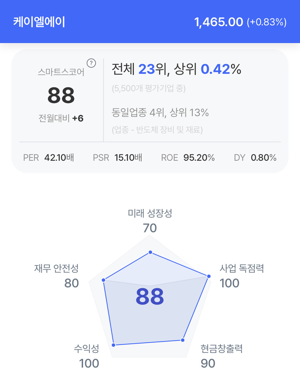| KLA 주가 분석. (자료=초이스스탁) |