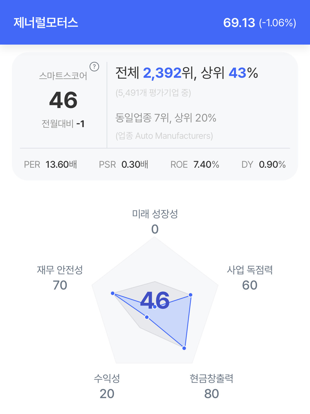 | 제너럴 모터스 주가 분석. (자료=초이스스탁) |