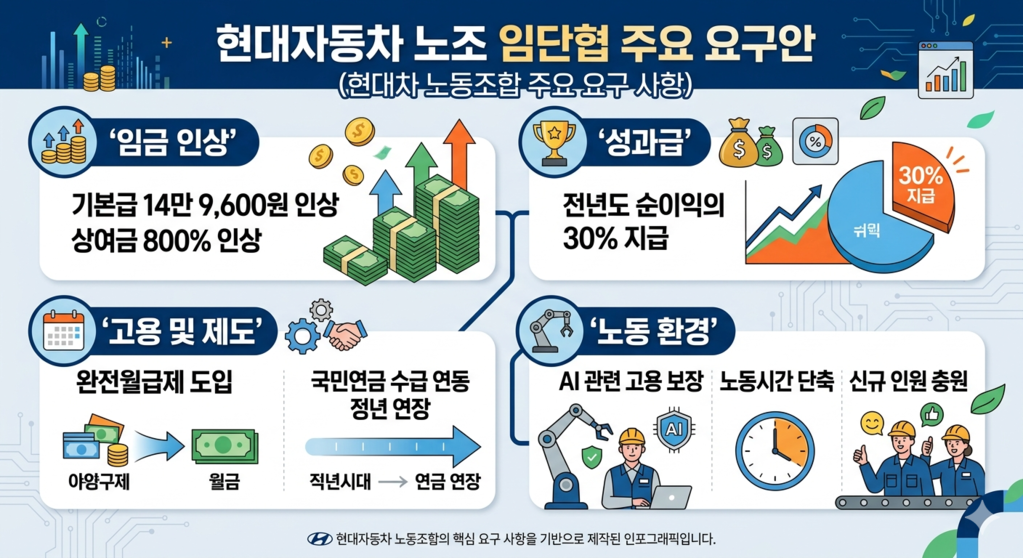 [알파경제=김영택 기자] 현대자동차 노동조합이 올해 임금협상 요구안을 확정하며 고용 및 소득 안정성 확보를 위한 본격적인 행보에 나섰다.
