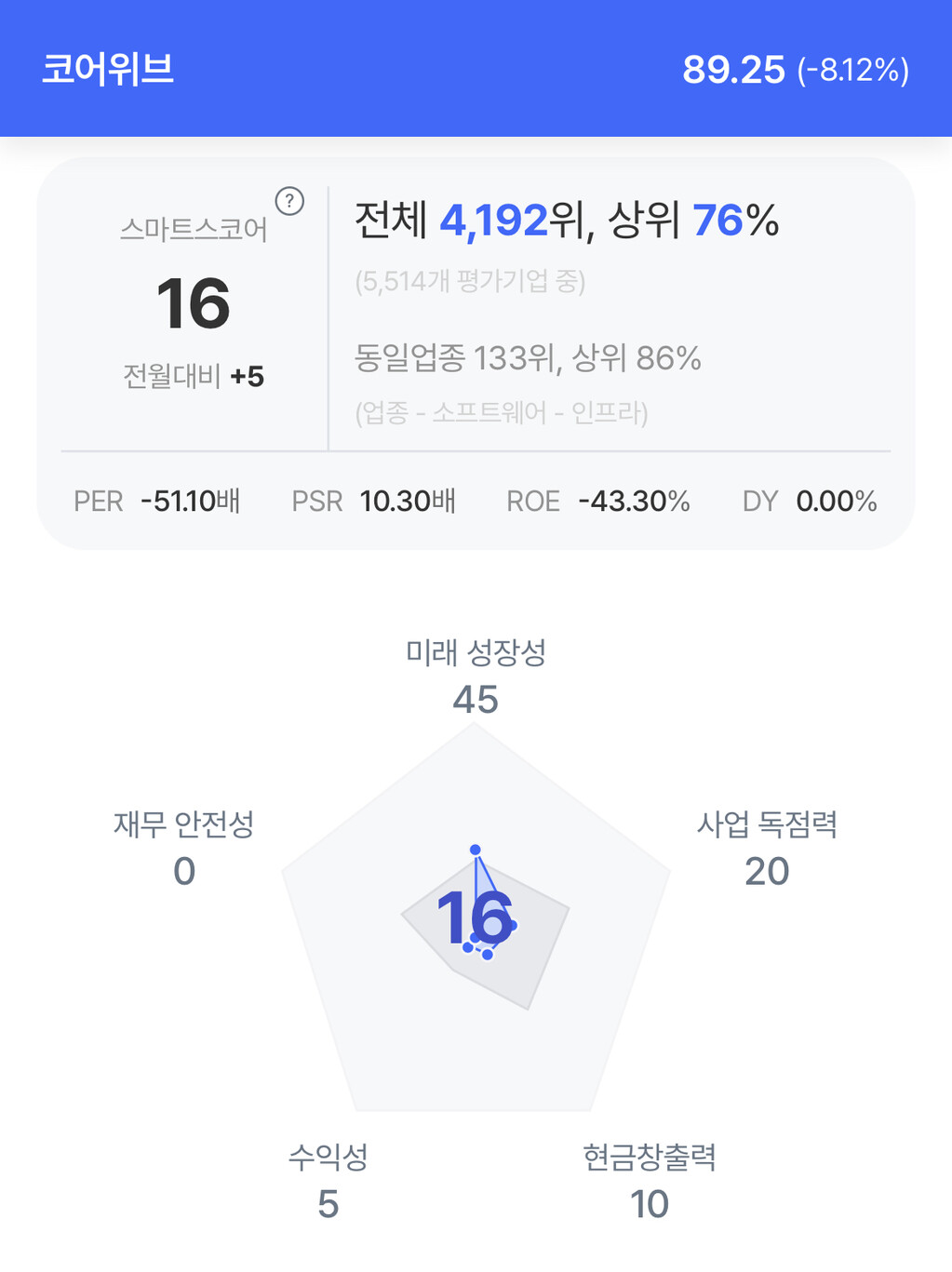 코어위브의 해명에도 불구하고 주가는 89.25달러로 8.12% 하락했다.