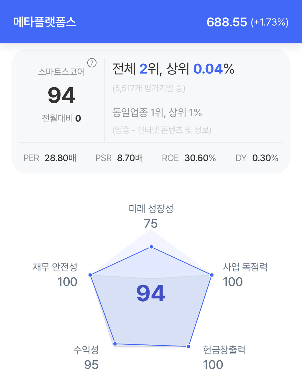 메타 주가는 688.55달러로 1.73% 상승 마감했다.