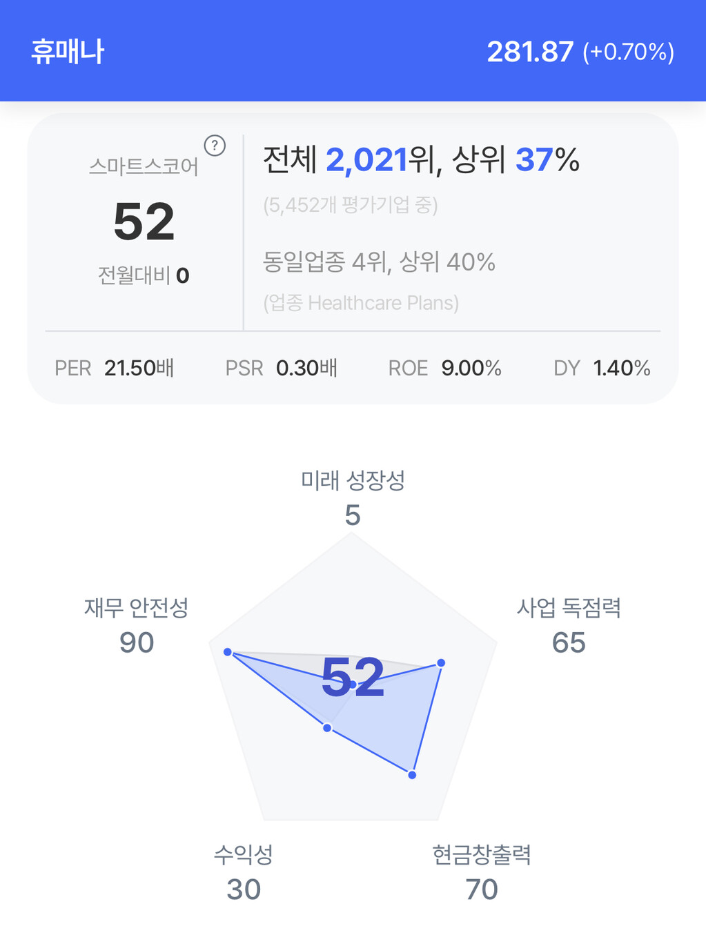 휴매나는 미국에서 메디케어 어드밴티지 프로그램을 운영하는 주요 민간 보험사 중 하나다. 이 프로그램은 미국 정부가 65세 이상 고령자 및 장애인 의료 관리를 민간 보험사에 위탁해 고정 요율로 지급하는 방식이다.