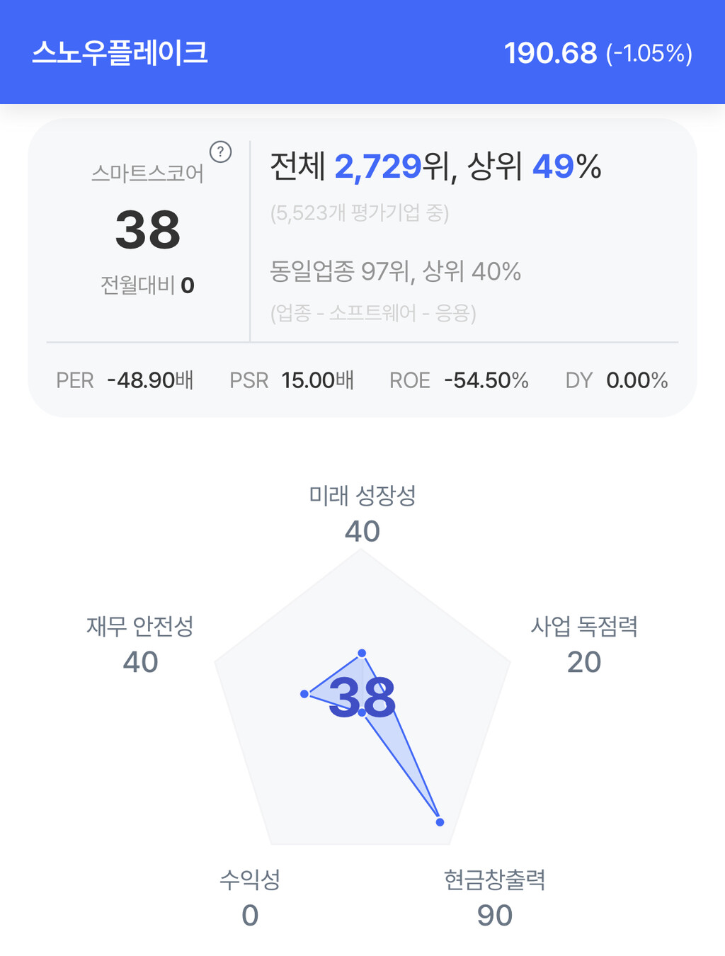 | 스노우플레이크 주가 분석. (자료=초이스스탁) |
