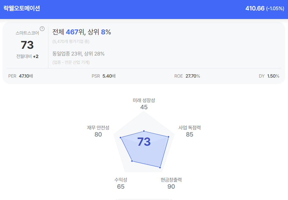 | 락웰오토메이션 종목진단 (출처=초이스스탁) |