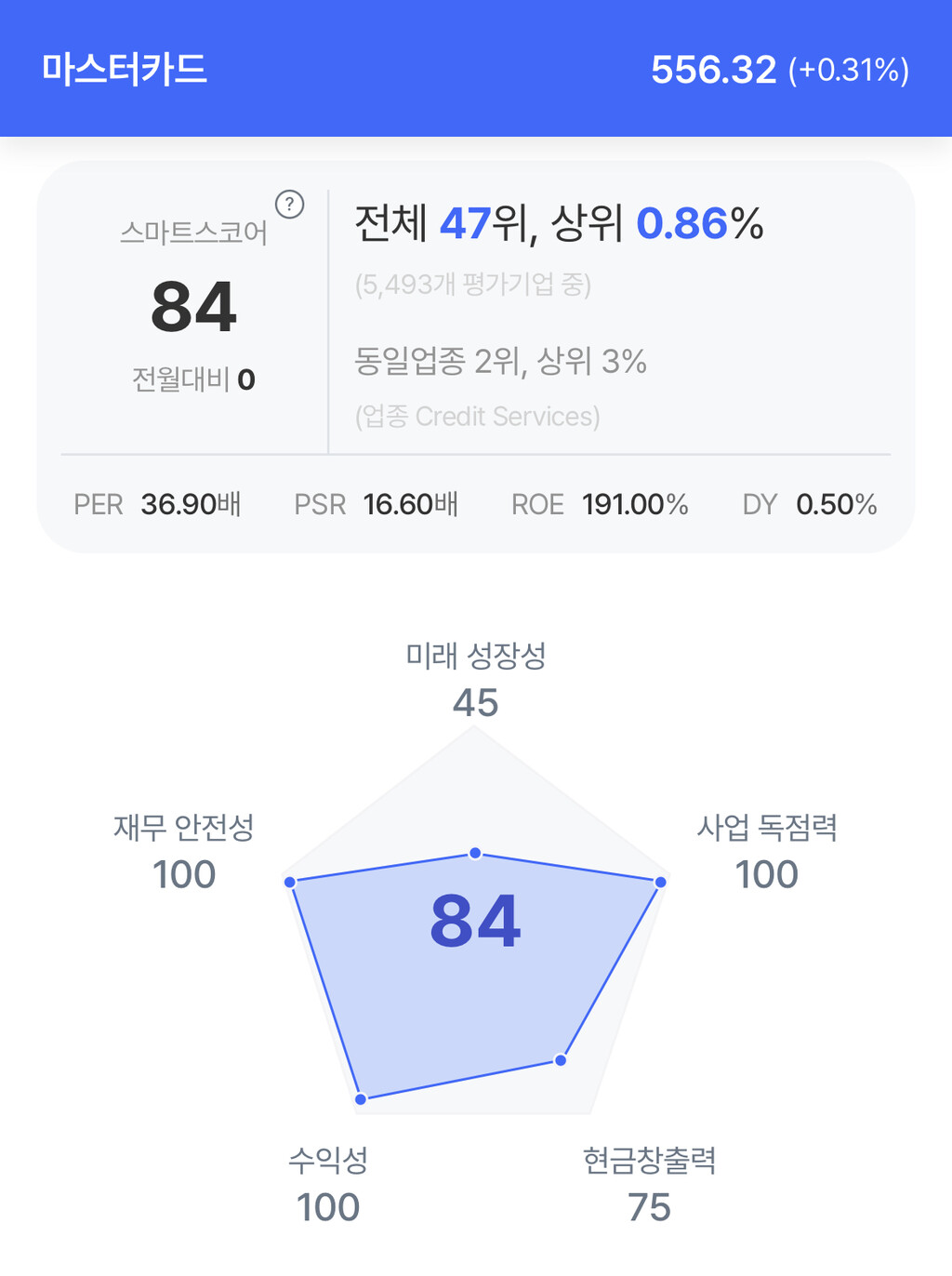 | 마스터카드 주가 분석. (자료=초이스스탁) |