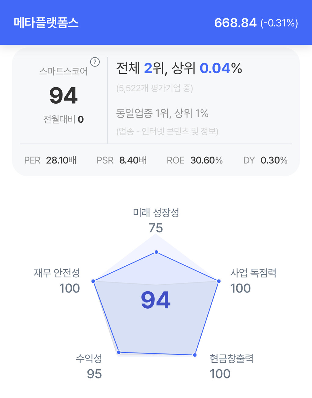 메타 주가는 0.31% 하락한 668.84달러를 기록했다.