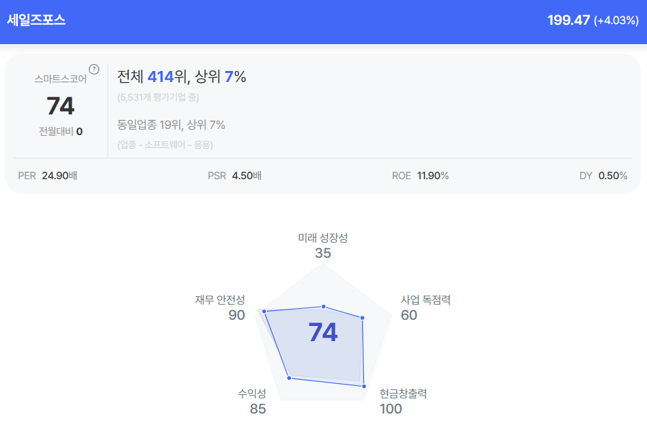 | 세일즈포스 종목진단 (출처=초이스스탁) |