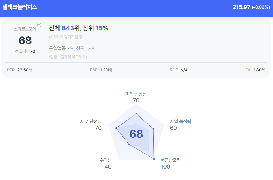 델테크놀러지스 종목진단 (출처=초이스스탁)