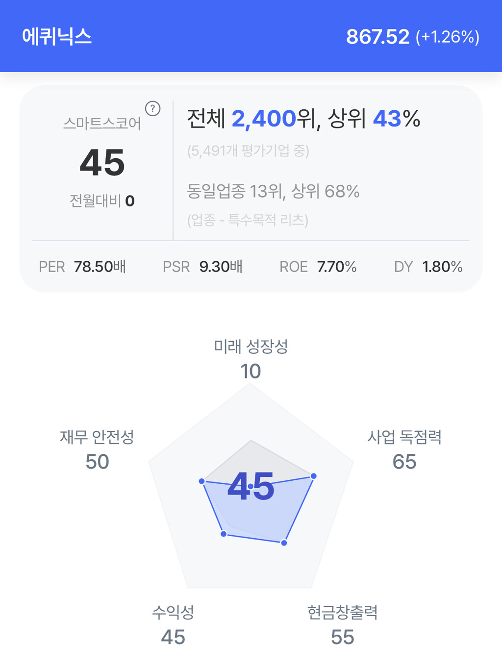 | 에퀴닉스 주가 분석. (자료=초이스스탁) |