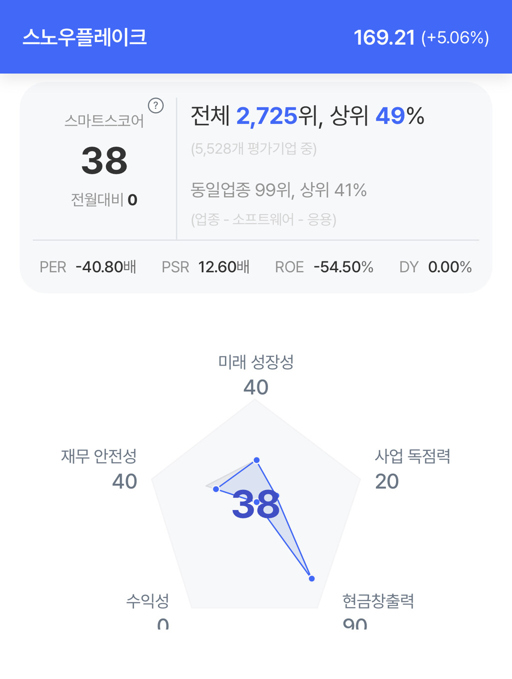 | 스노우플레이크 주가 분석. (자료=초이스스탁) |
