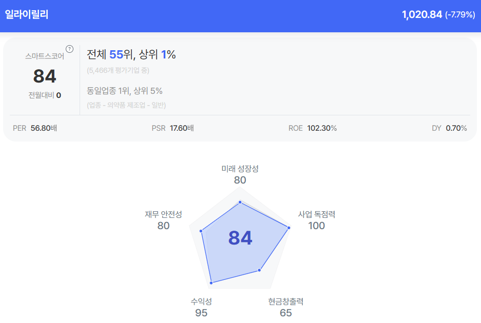 | 일라이릴리 종목진단 (출처=초이스스탁) |