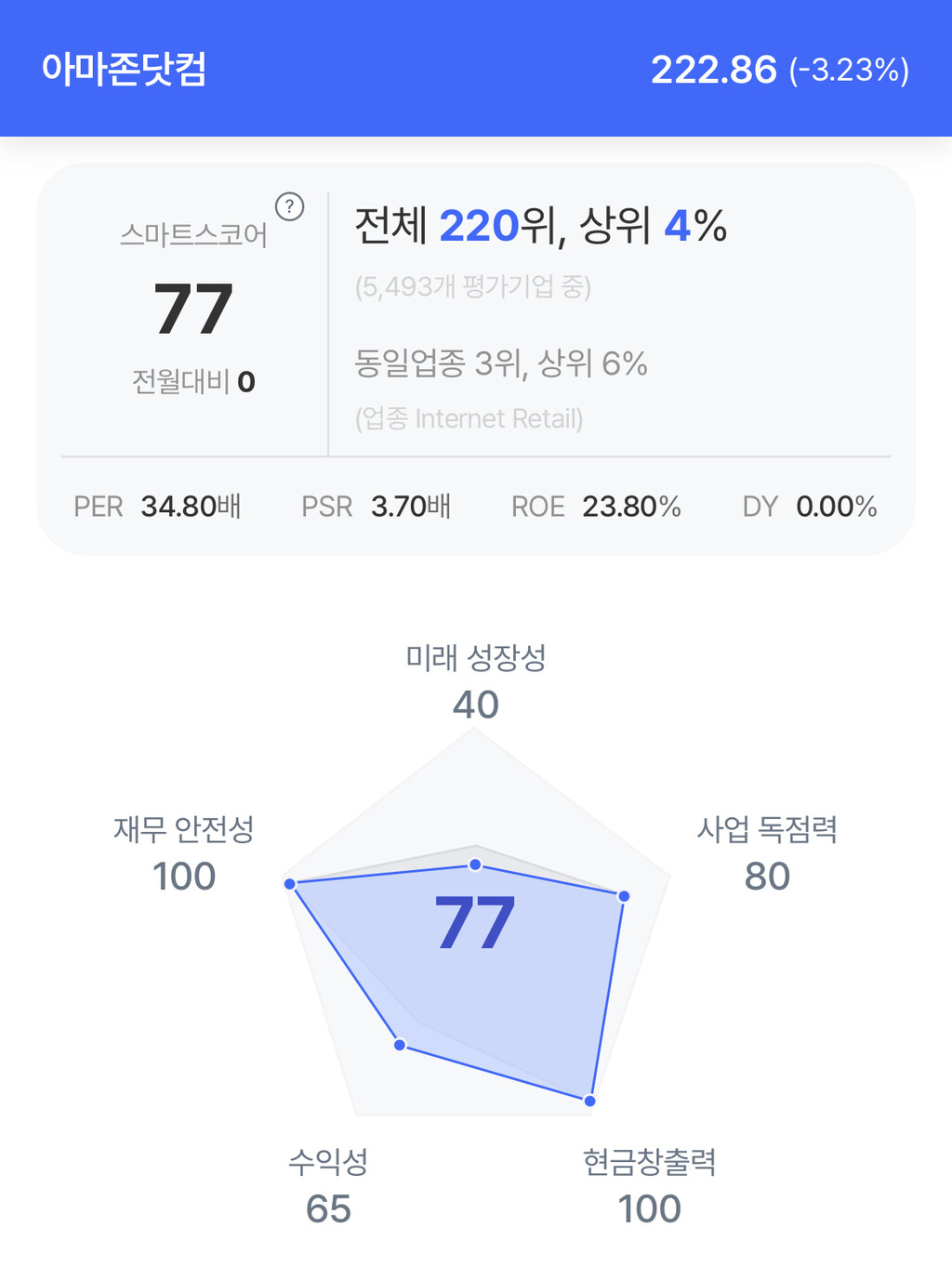 주가는 222.86달러로 3.23% 하락 마감했다.