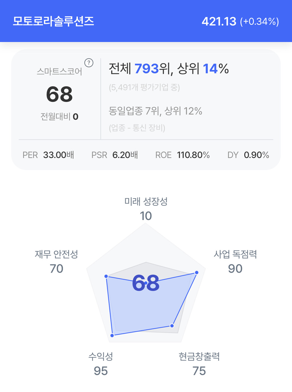 | 모토로라 솔루션스 주가 분석. (자료=초이스스탁) |