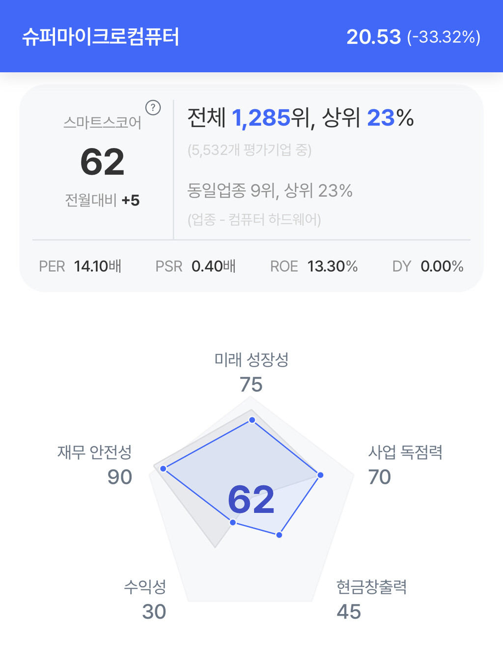 | 슈퍼마이크로 컴퓨터 주가 분석. (자료=초이스스탁) |