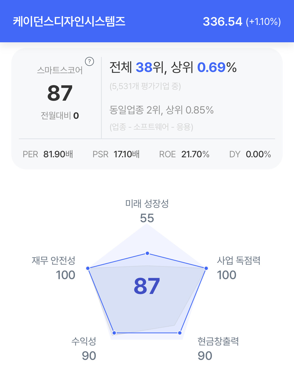 | 케이던스 디자인 시스템즈 주가 분석. (자료=초이스스탁) |