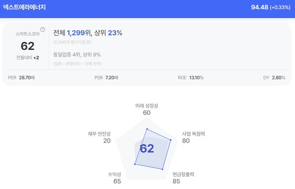| 넥스트에라에너지 종목진단 (출처=초이스스탁) |