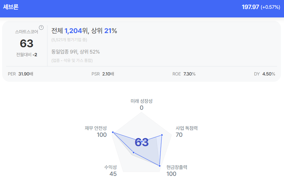 | 셰브론 종목진단 (출처=초이스스탁) |