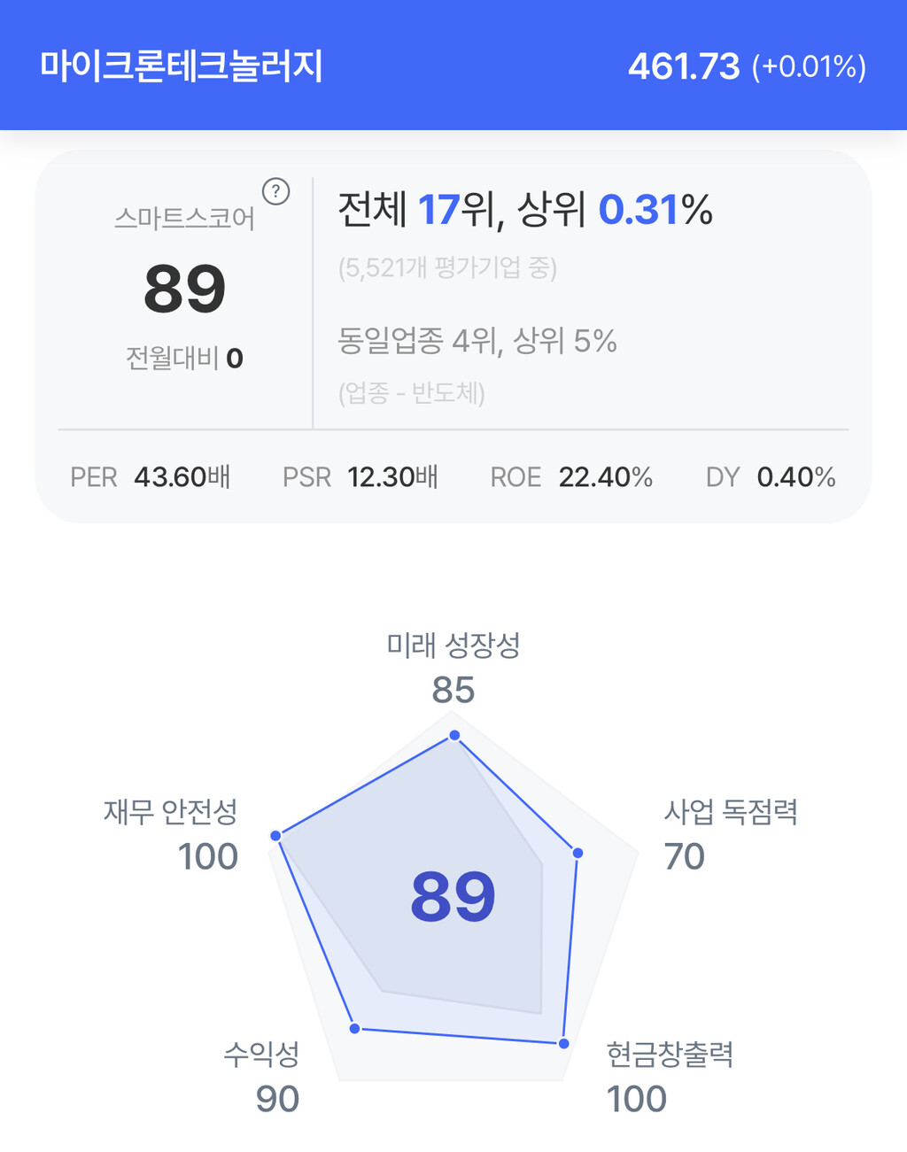마이크론 주가는 올해 들어 61% 이상 상승했으나 이날 461.73달러로 보합세를 보였다.