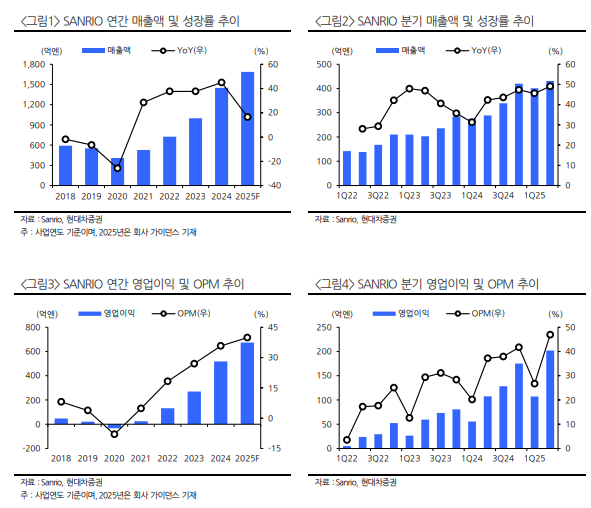 김현용 현대차증권 연구원은 "산리오는 2020년부터 디지털 마케팅 주력하며, 다양한 지역과 다양한 캐릭터 효과로 실적이 급증하고 있다"고 분석했다.